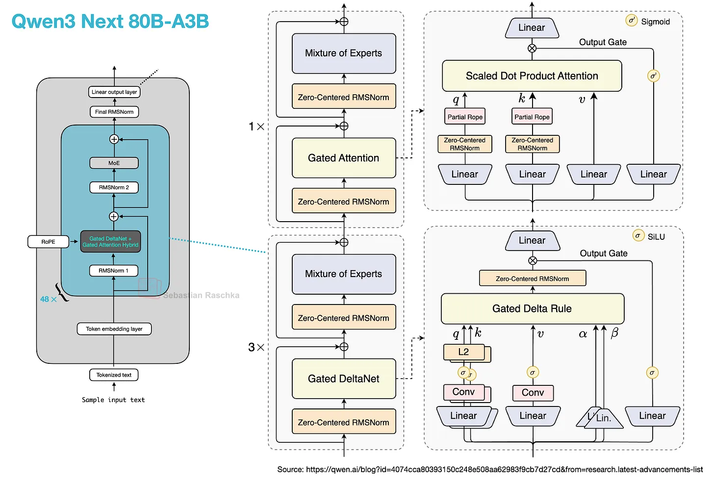 Gated DeltaNet is a linear attention variant with inspiration from recurrent neural networks, including a gating mechanism from the Gated Delta Networks: Improving Mamba2 with Delta Rule paper. In a sense, Gated DeltaNet is a DeltaNet with Mamba-style gating, and DeltaNet is a linear attention mechanism. Due to the overview-nature of this article, DeltaNet would be good topic for a separate article in the future.