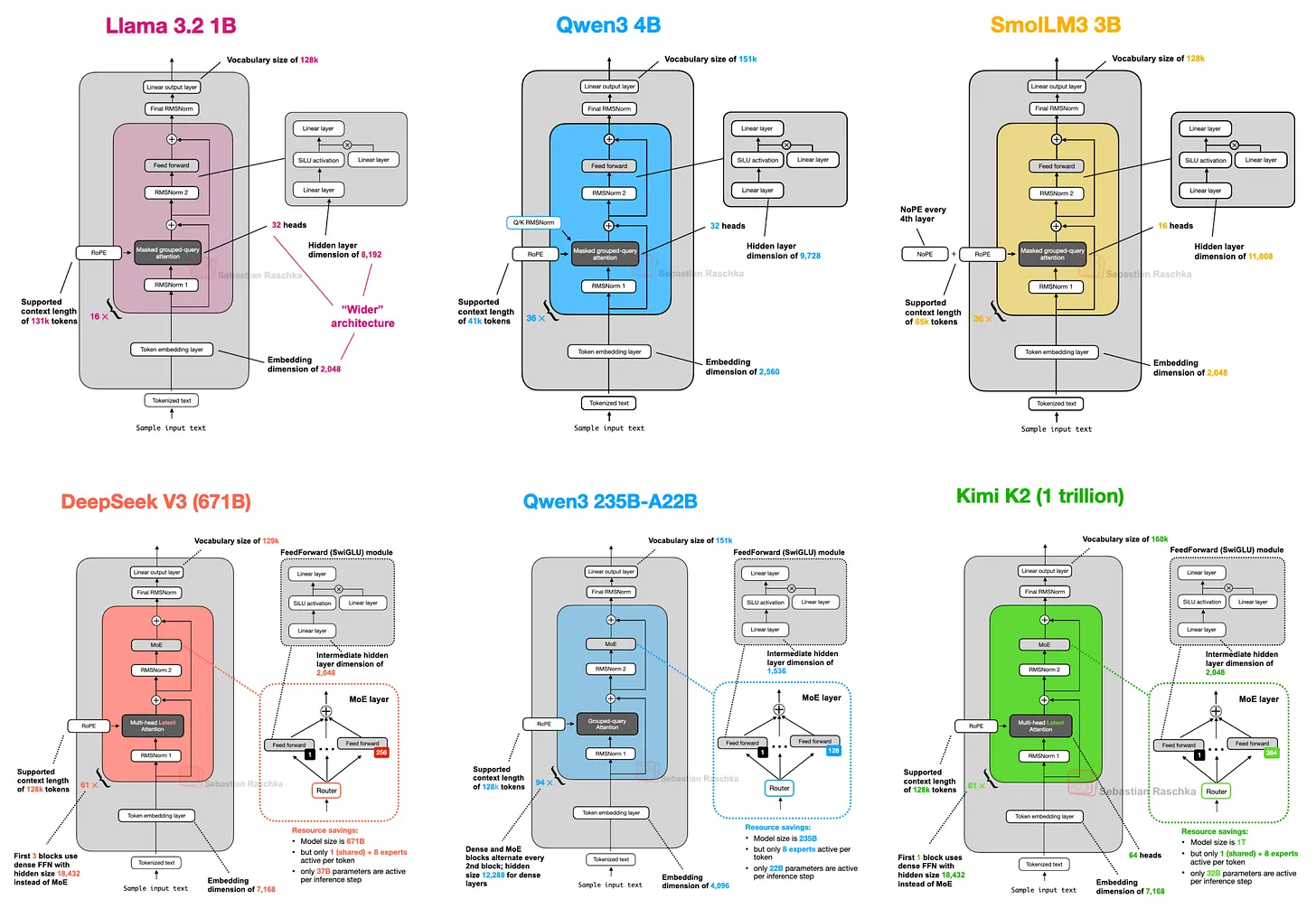 However, I think that there is still a lot of value in examining the structural changes of the architectures themselves to see what LLM developers are up to in 2025. (A subset of them are shown in Figure 1 below.)