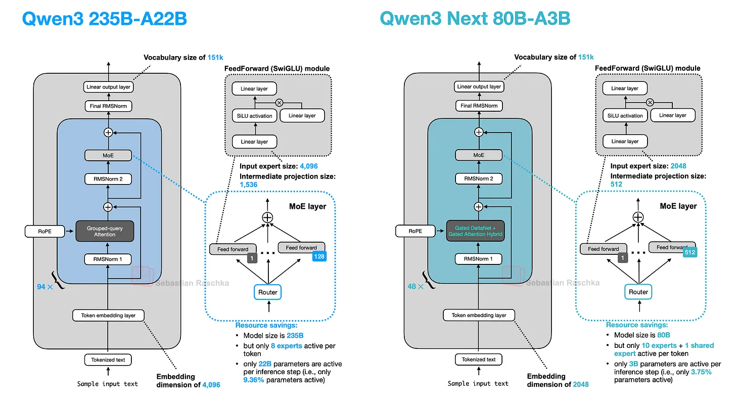 Overall, it’s the same architecture but just scaled up. Also, the proportions (e.g., going from the input to the intermediate size in the feed forward layer, and so on) roughly match the ones in Qwen3.