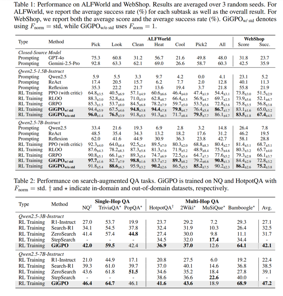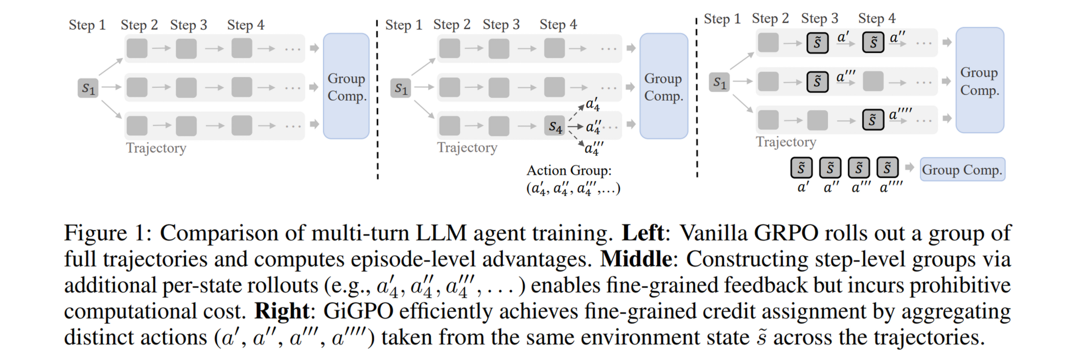 在训练 Agent 时,往往需要 Agent 和环境进行多轮交互,交互轨迹长达几十上百 k。而 GRPO 对同一条轨迹中的所有 token 一视同仁,导致优化难度较大,因此需要对 token 进行更精细的信用分配。GiGPO 就是为了缓解这个问题而提出的。